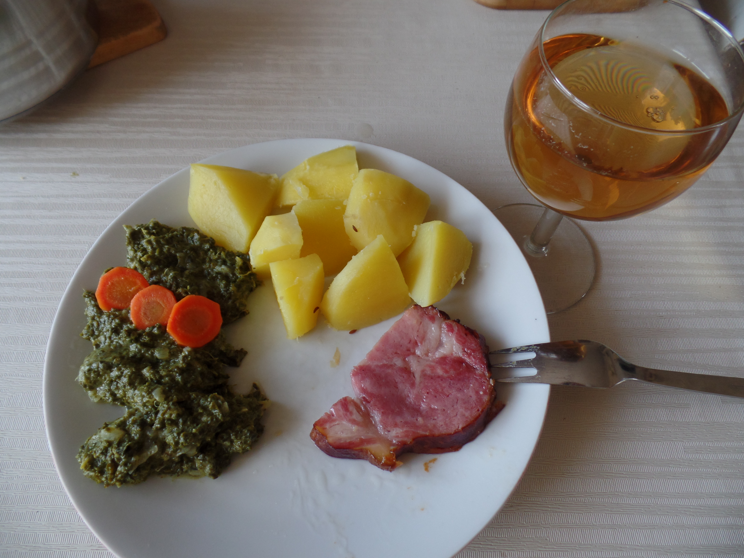 Ke špenátu si dáme kousek uzeného masa, pár brambor a samozřejmě nesmí chybět trochu piva.
